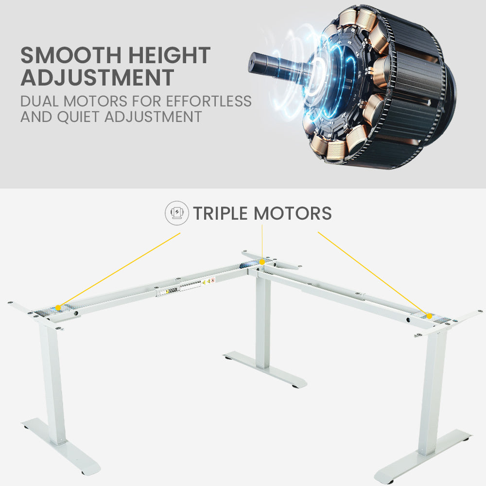 FORTIA 3-Motor Corner Standing Desk – 173cm, Black/White Frame