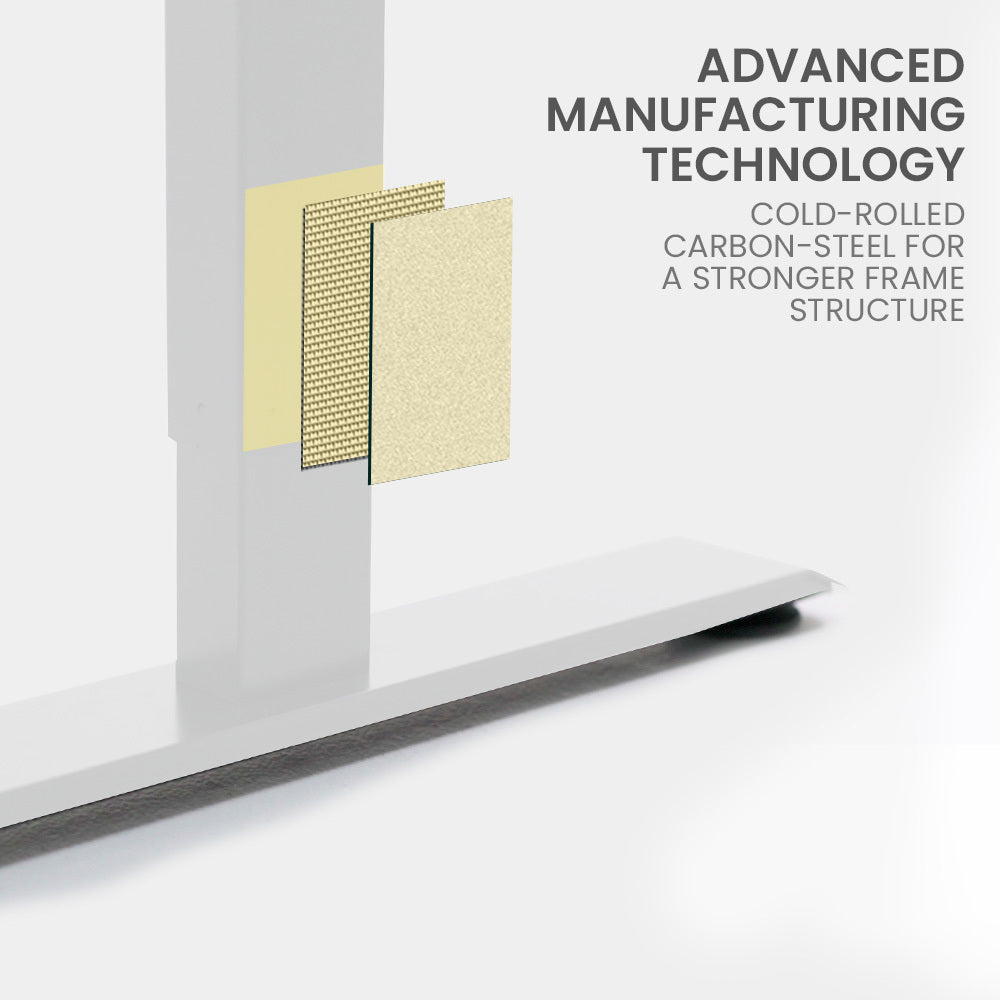 The FORTIA electric corner desk operates quickly, smoothly, and quietly with a triple motor system. It’s built to last, with a durable design that handles up to 120kg. The motors are discreetly housed within the frame for added safety and a sleek look.